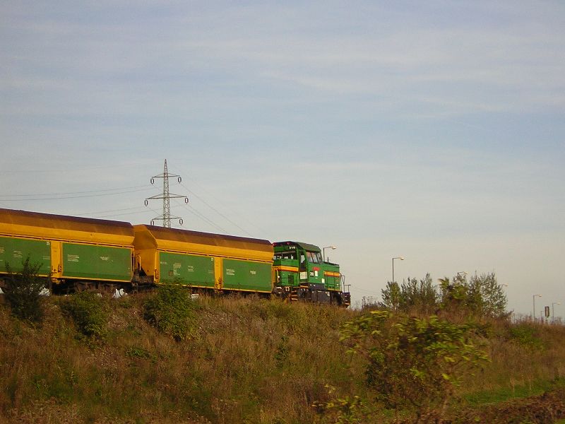 709 MUS, dle vnitropodnikového číslování 310 sune soupravu prázdných Falls z počeradské elektrárny zpět do úpravny uhlí Hrabák 8.10.2010